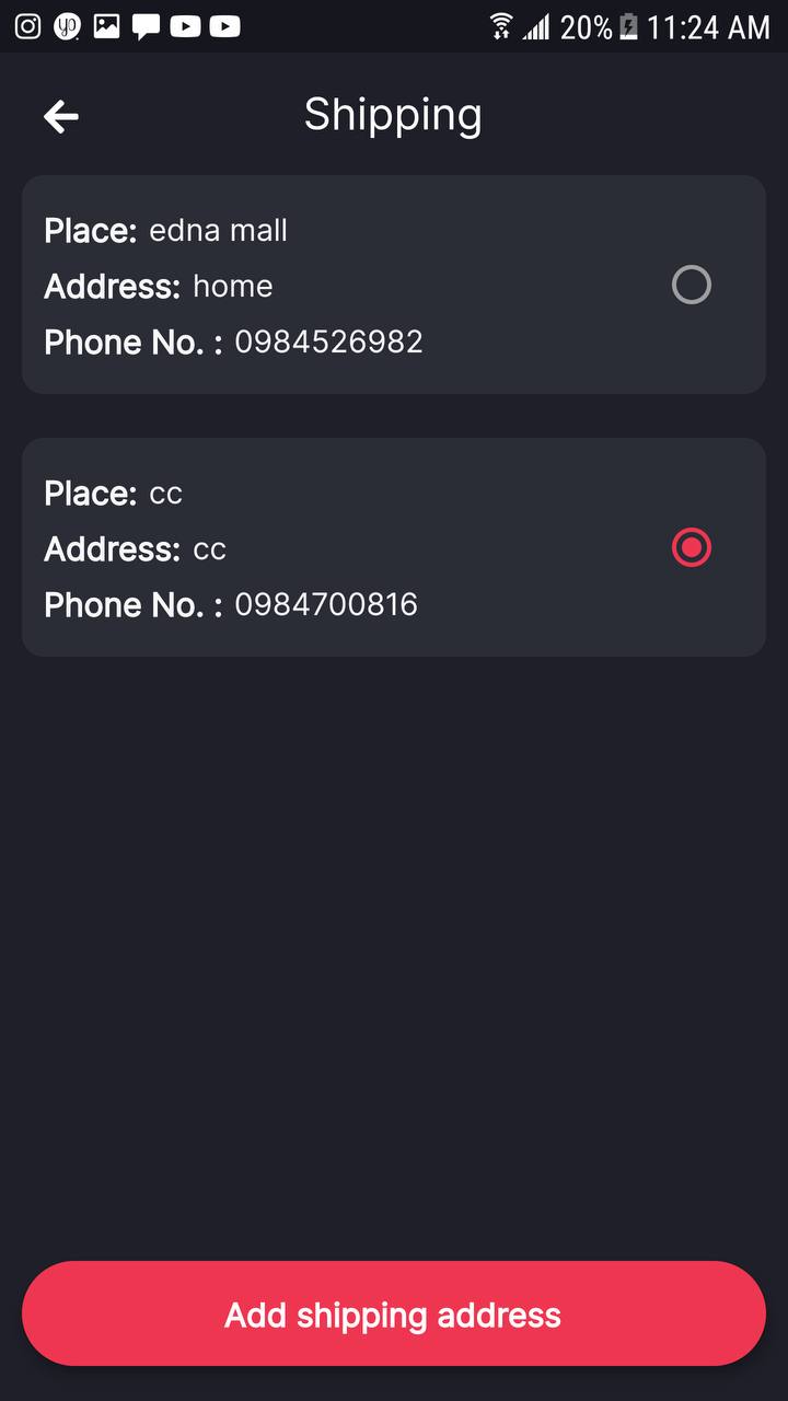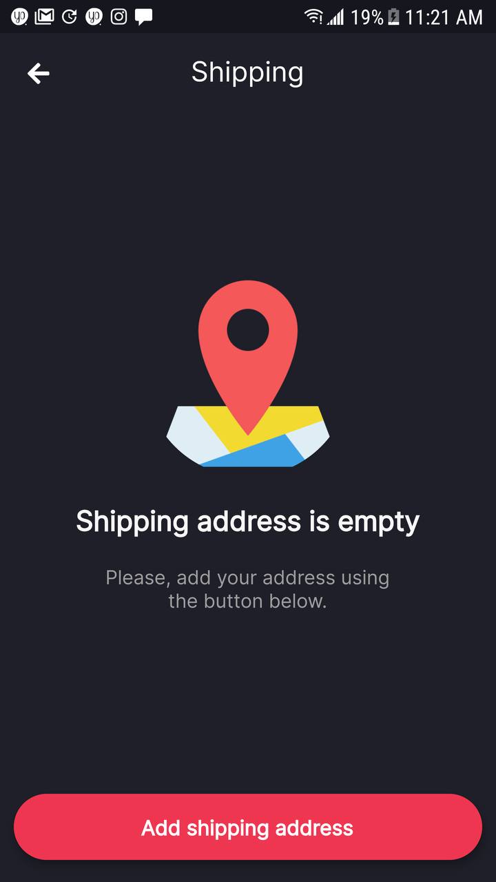 | Shipping history | New shipping | No shipping address |