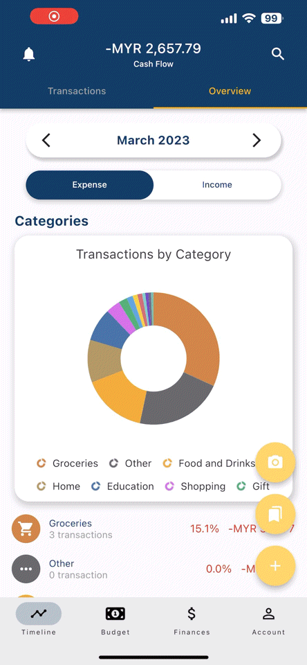 - View expenditure overview: See an overview of your expenses and income on the home screen.
