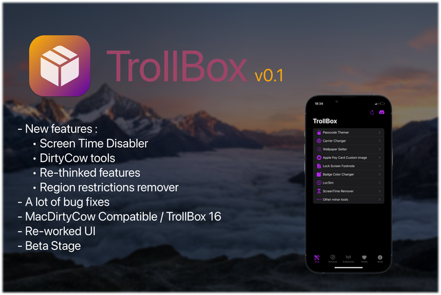 Download TrollBox16 ONLY if you're on MacDirtyCow device. PLEASE DO NOT DOWNLOAD 16 ON IOS 14, YOU WOULD BOOTLOOP