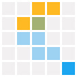 标准的 Blokus 游戏由 21 种形状的棋子,每个形状四个颜色(红,绿,蓝,黄)各一份共 84 个棋子和 20 * 20 的正方形棋盘构成。每个颜色有对应的起始点。