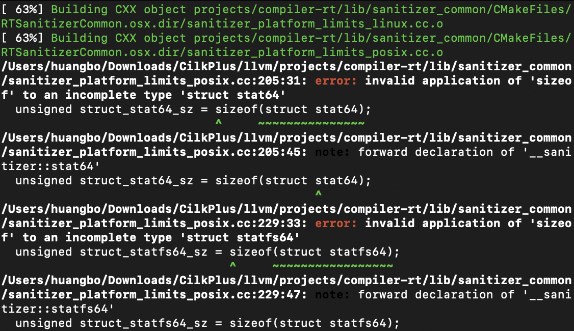 I am trying to build CilkPlus on my Mac and I followed the instructions in https://cilkplus.github.io. However, I got the following build errors when I run make && make install: