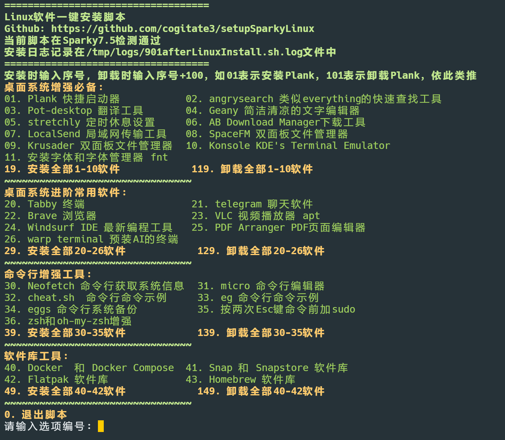 本项目旨在通过自动化安装常用软件和配置,简化全新 Linux 安装的过程。脚本使用 Bash 编写,专为 Sparky Linux 定制,但也足够灵活,可用于其他基于 Debian Bookworm 的发行版,如 MX Linux 和 Linux Mint。