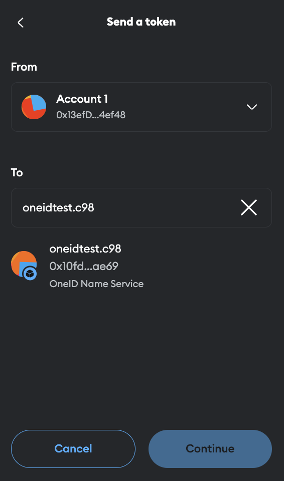Once installed, you can send token to any wallet, any Blockchain by using a OneID Service that is linked to a wallet address.