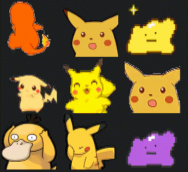The example montage program is provided to demonstrate basic usage and results. After running shards install to grab the PNG dependency and make all to build the examples, executing ./montage < examples/pokes should produce something like the following: