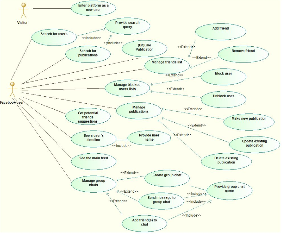 In the report, we start by identifying a formal list of requirements, as well as both Use Case and Class UML diagrams. The former can be found below.