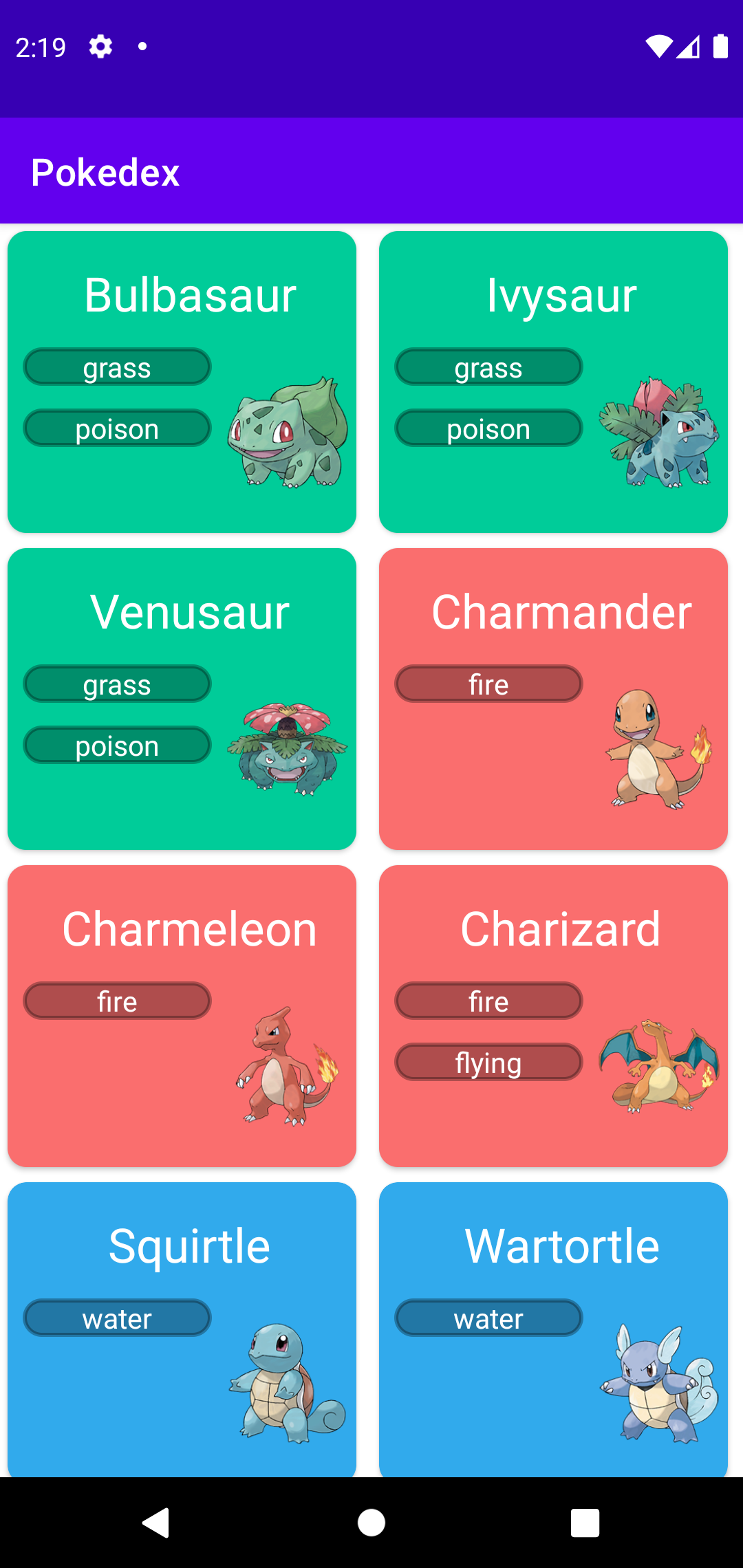 Pokedex Description Pokedex is a small application that shows a list of pokemons using pokeapi. Tech Stack Kotlin MVVM architecture Hilt for dependency injection. Retrofit Coroutines Glide Screenshots
