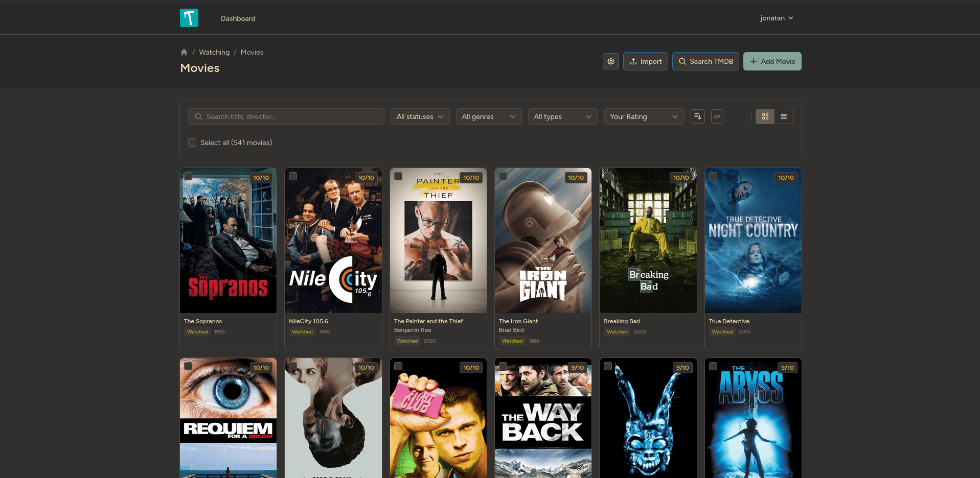 Movie metadata uses TMDB. If you want it, grab an API key from themoviedb.org and add it to .env: