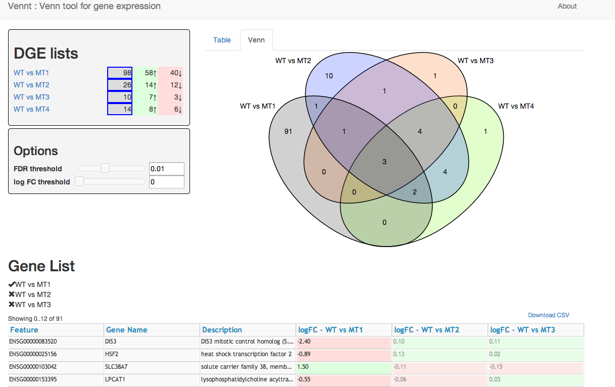 - Dynamic Venn diagrams for exploring lists of differential expressed genes