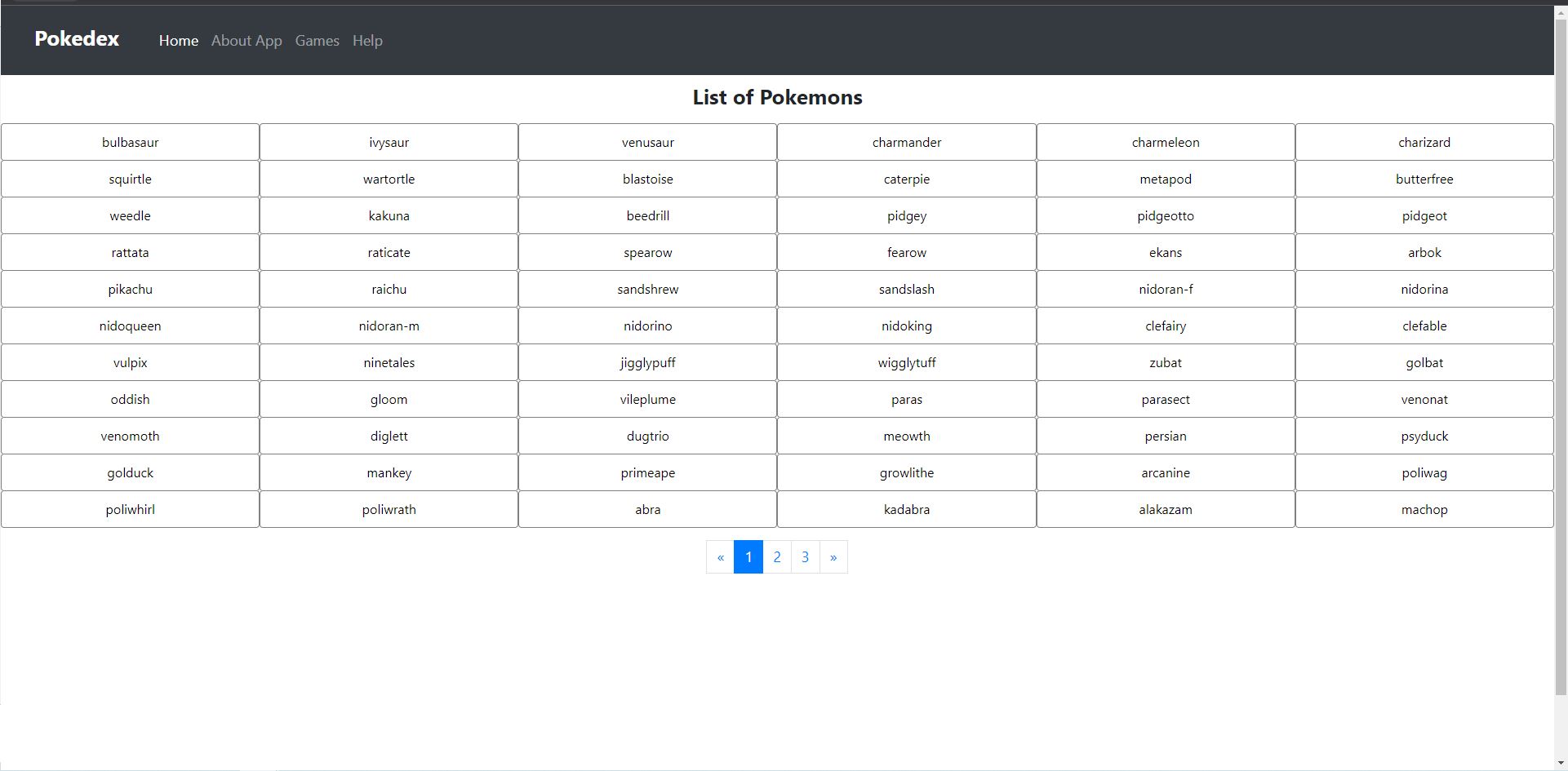 Pokemon App loaded a pokemon list from an external API and represent it to the users. By clicking on each pokemon name, users have the possibility to see more details about it.