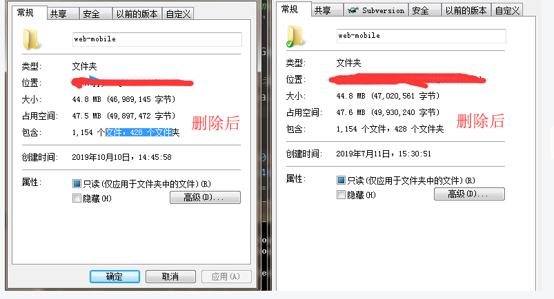 提示删除了  但是 删除前后的打包web的大小变化微小