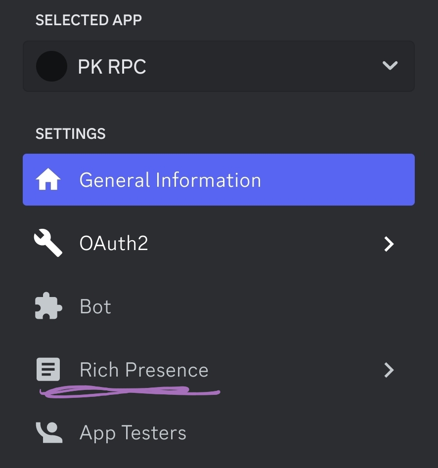 - In the sidebar, find the option for "Rich Presence." Clicking this should navigate to the assets page automatically, but if not, select that one