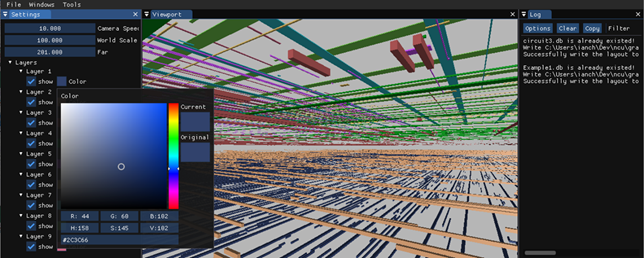 (4) 建置完成後build資料夾裡會有一個Release的資料夾,進去Release資料夾裡就會有編譯完成的ic_layout_visual.exe的執行檔。執行此檔案就可以開始使用軟體。(一開始執行的時候,各個視窗c會散亂的放在軟體各處,請自行拖拉視窗的大小,並擺放到想要的位置上面,之後執行會記憶視窗的擺放位置)。