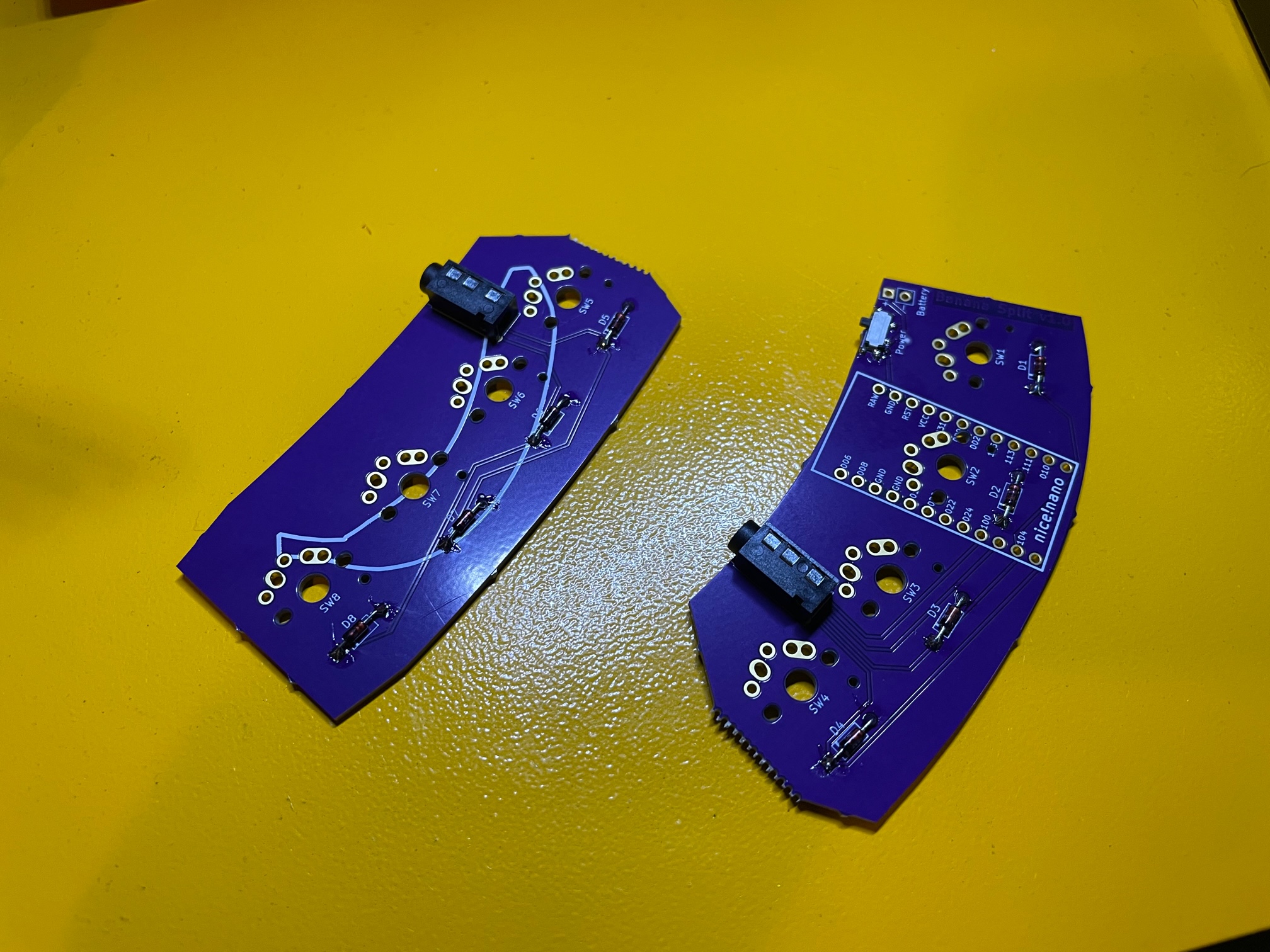 Gently pry the MCU from its socket, and set aside. Snap your switches into the top shells and solder the PCBs in place. Reinstall the MCU.