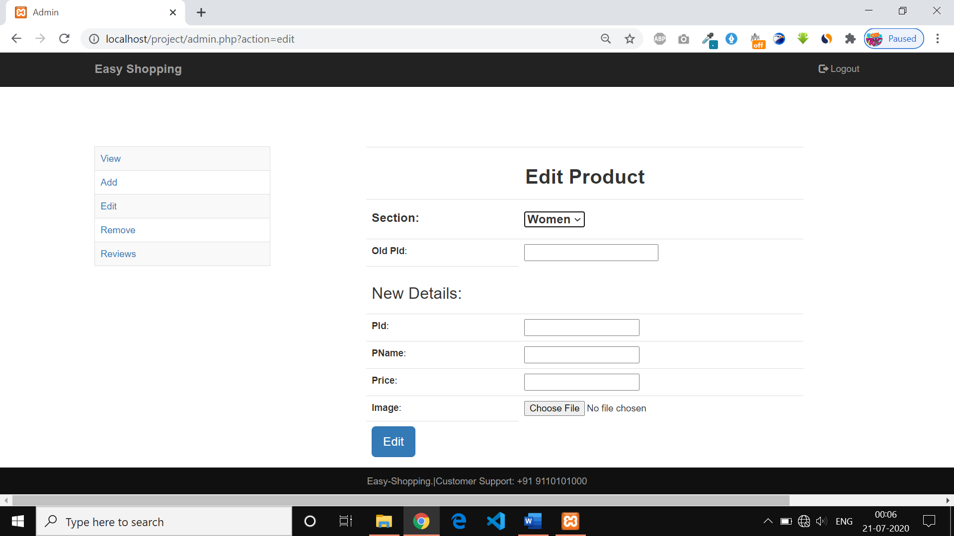 - Admin can add, edit or remove the products from databse as per product id.