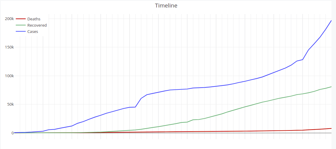 - Confirmed cases, deaths and recoveries timeline