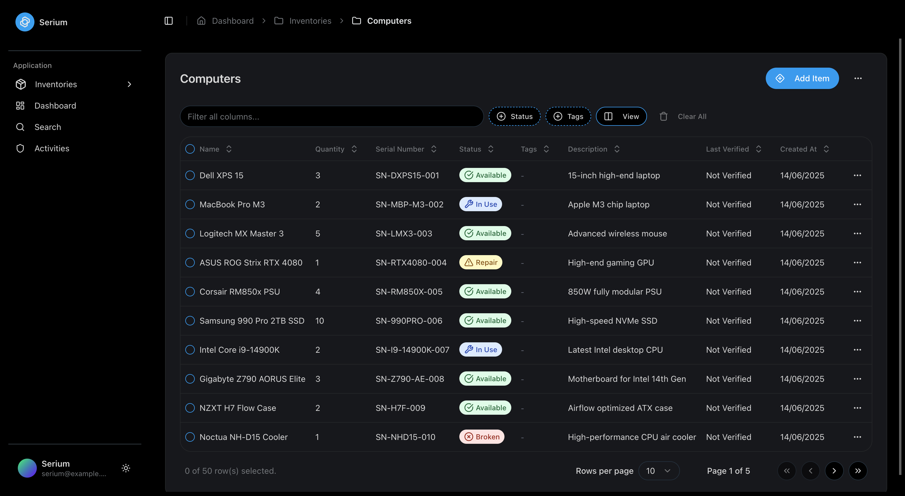 Serium is designed to solve the common frustrations of inventory management. Whether you're a small business owner, a hobbyist with a growing collection, or part of a team needing to track assets, Serium provides a clean, powerful, and collaborative platform. Say goodbye to clunky spreadsheets and outdated software – Serium brings a modern web experience to managing your items effectively.