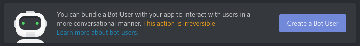 In order to run bot you have to obtain a bot account. It can be obtained through the applications page. Later you have to transform your app into app bot user