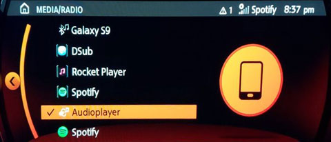 After all the apps are connected, a bunch of new entries will show up in the car's Connected menu. There should be a new Audioplayer or Spotify icon and a book icon with no label. This book icon is the Notifications app, if enabled.