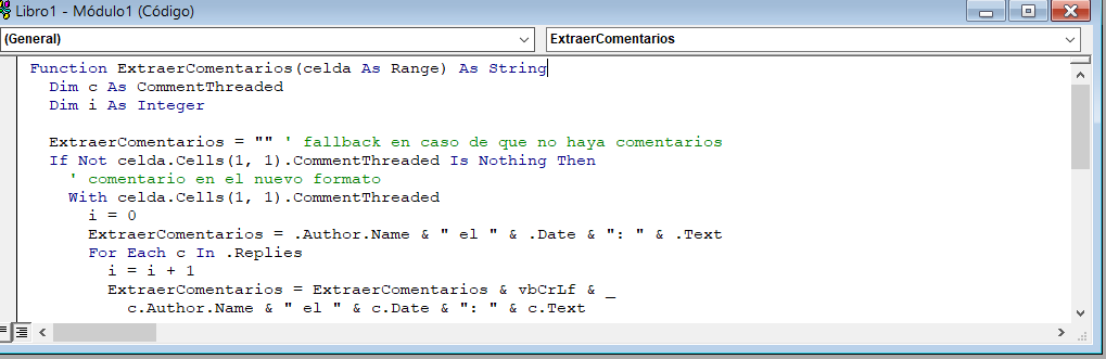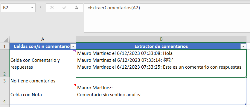 This script creates a new Excel function: =ExtraerComentarios().