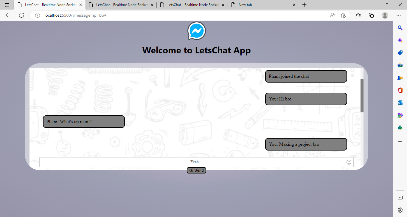 - Used Socket.io module for a two-way connection between client and server.