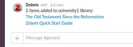 Get notifications to your Slack about newly added items in Zotero libraries.