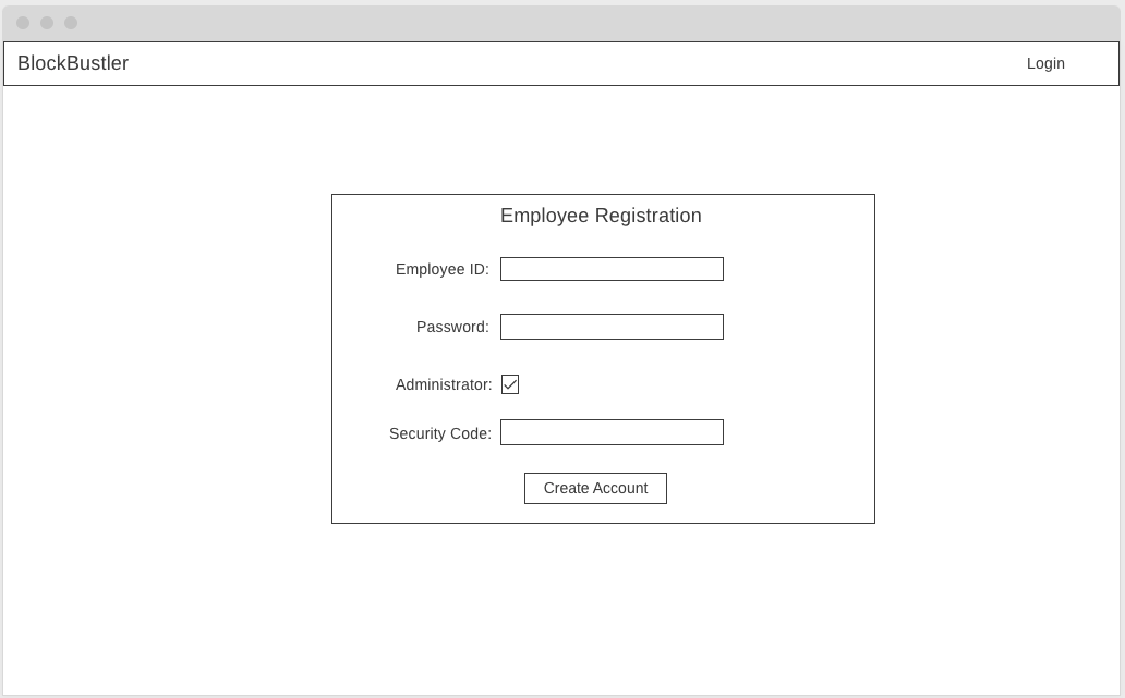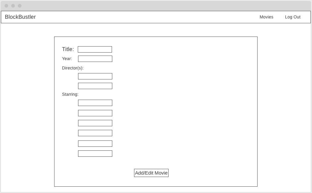 BlockBustler MVP will be an easily searchable inventory of movies in stock at BlockBuster. Intended for employees, after login users will be able to search for movies by title, director, or actors, check to see if it's in stock, and mark it rented or returned. To stay consistent with their current POS system, the application will be styled in the spirit of a DOS application.