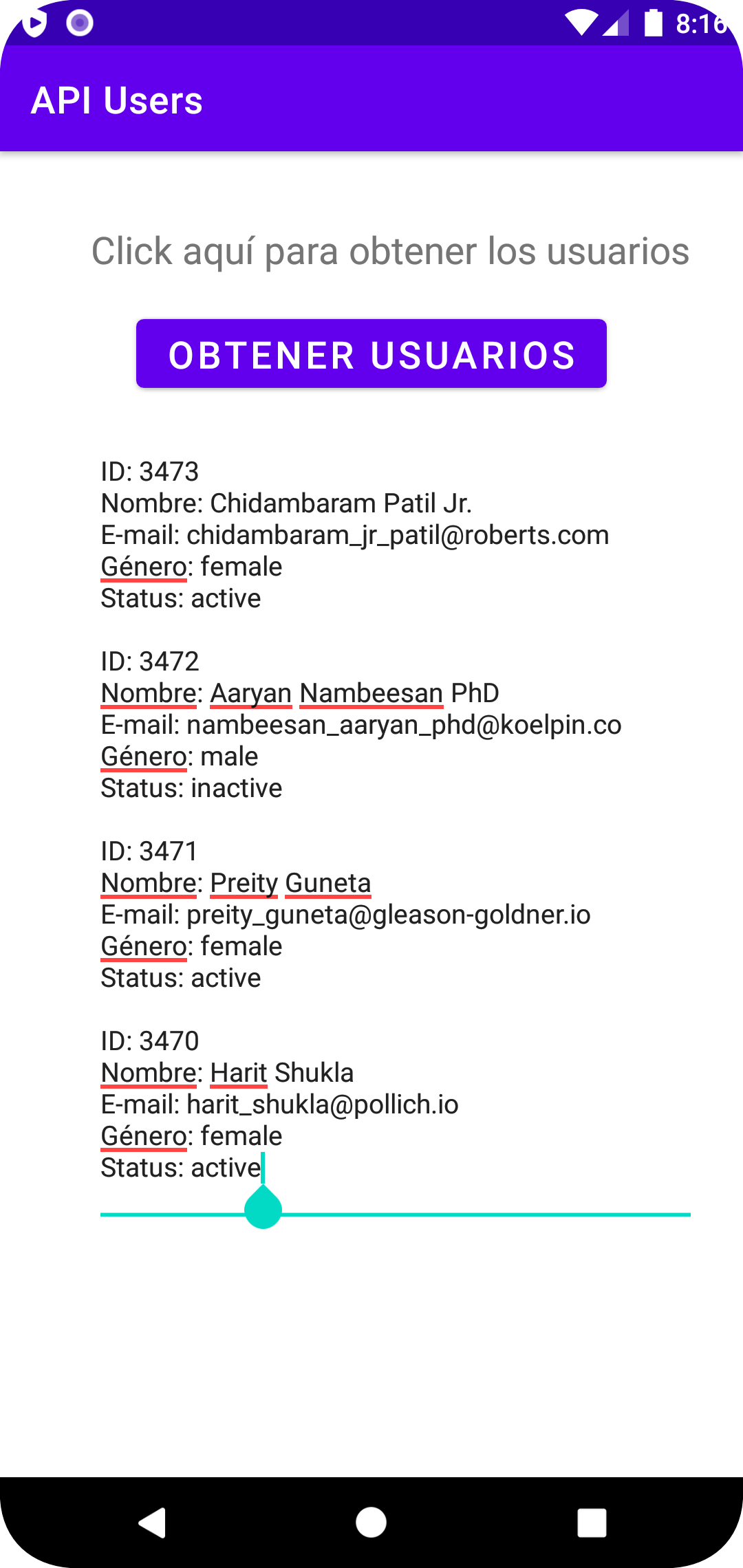 API de prueba: https://gorest.co.in/public/v1/users
