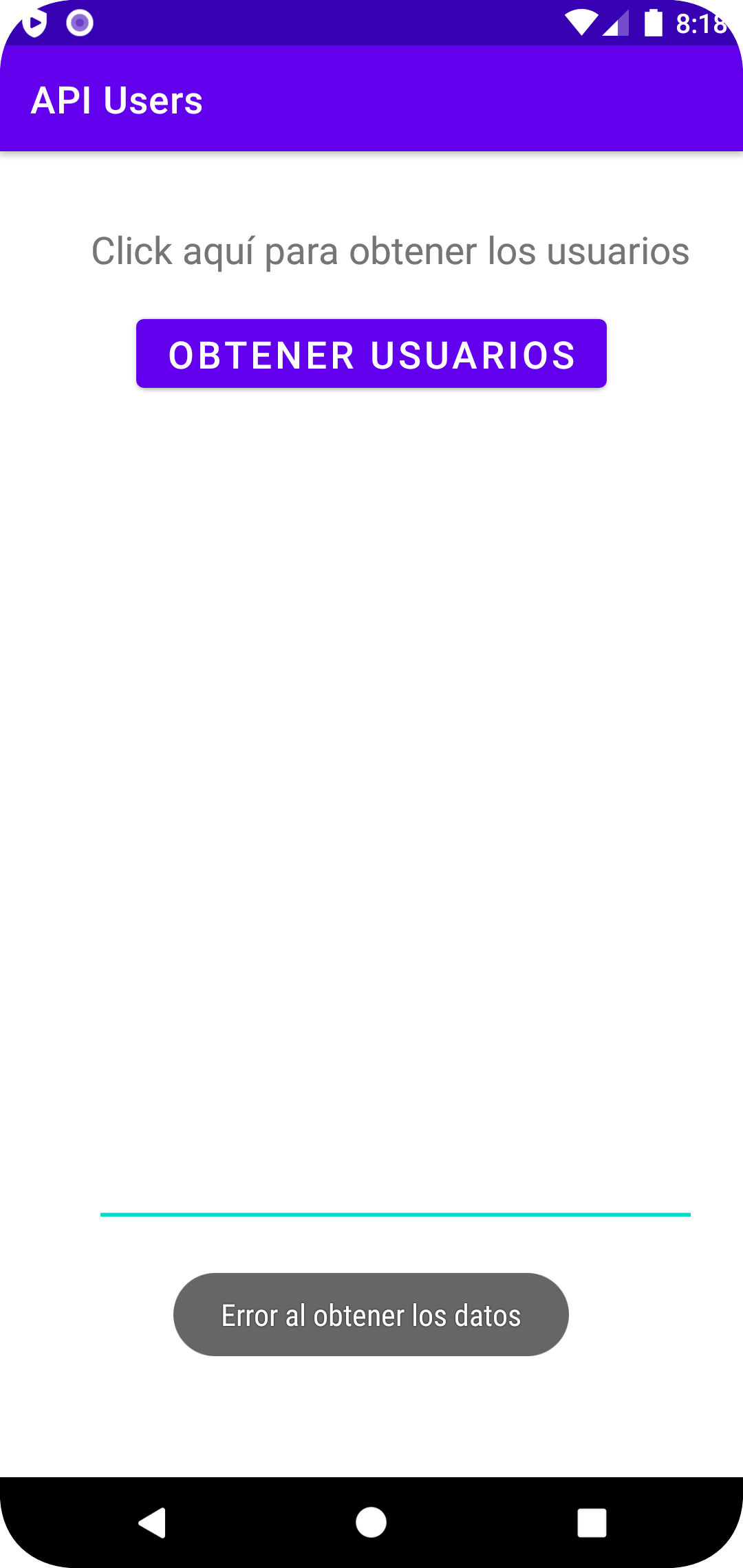 Usando API de prueba inválida (colocando mal el link)