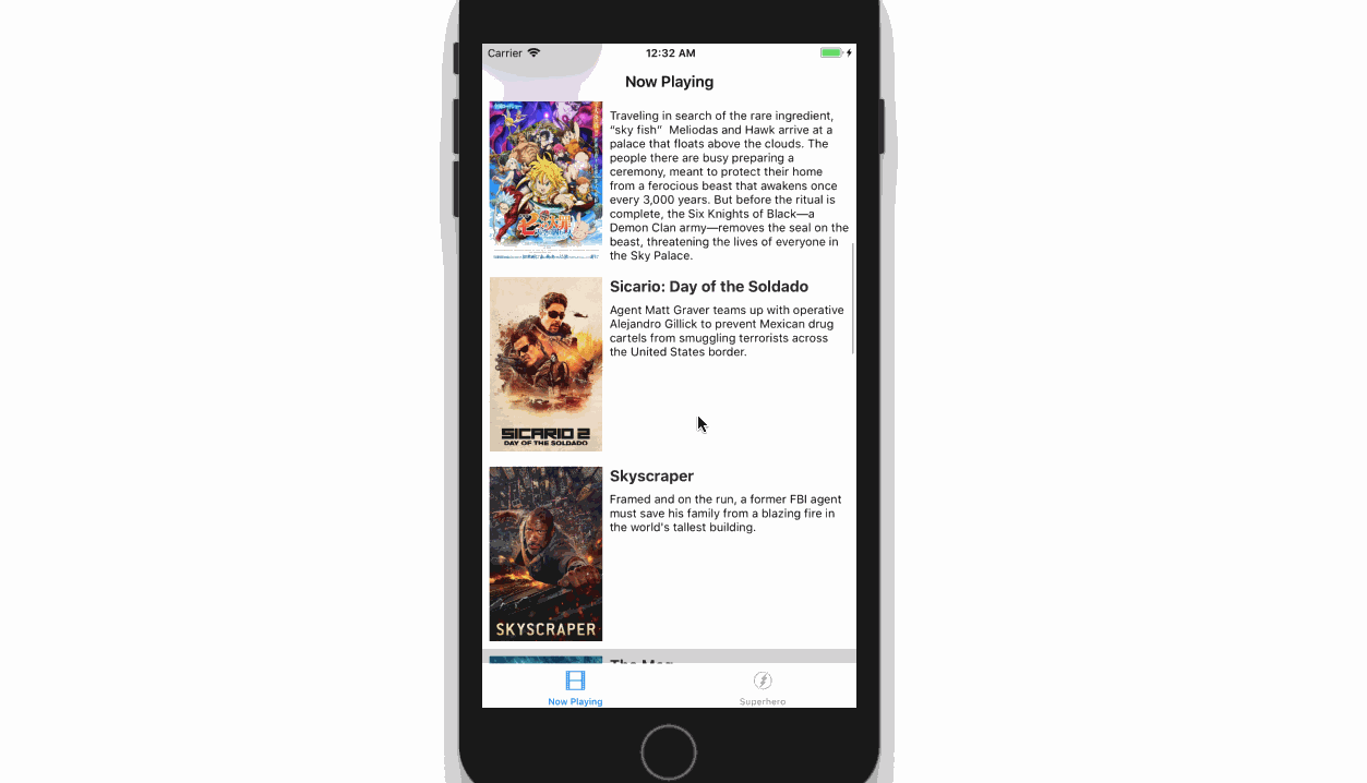 - User can tap a tab bar button to view a grid layout of Movie Posters using a CollectionView (+5pts)