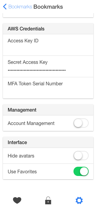This adds a 'use favorites' setting, which enables the 'Favorites' listing. You can enable or disable bookmarks to be added to the list. This is all stored locally.