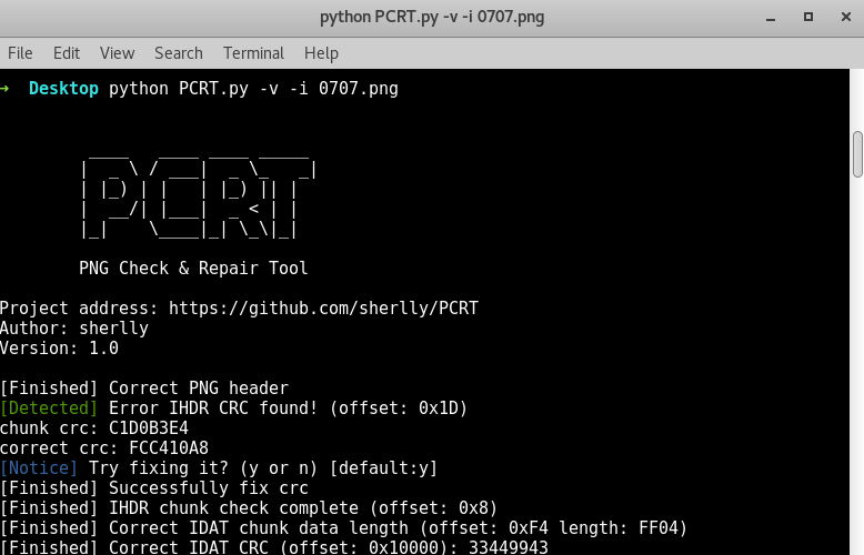 - 实现修复由于错误的图片长度或宽度导致的IHDR块crc校验出错