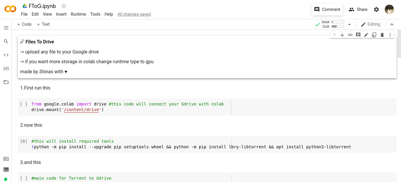 Torrent Files to Google Drive via Google colab notebook