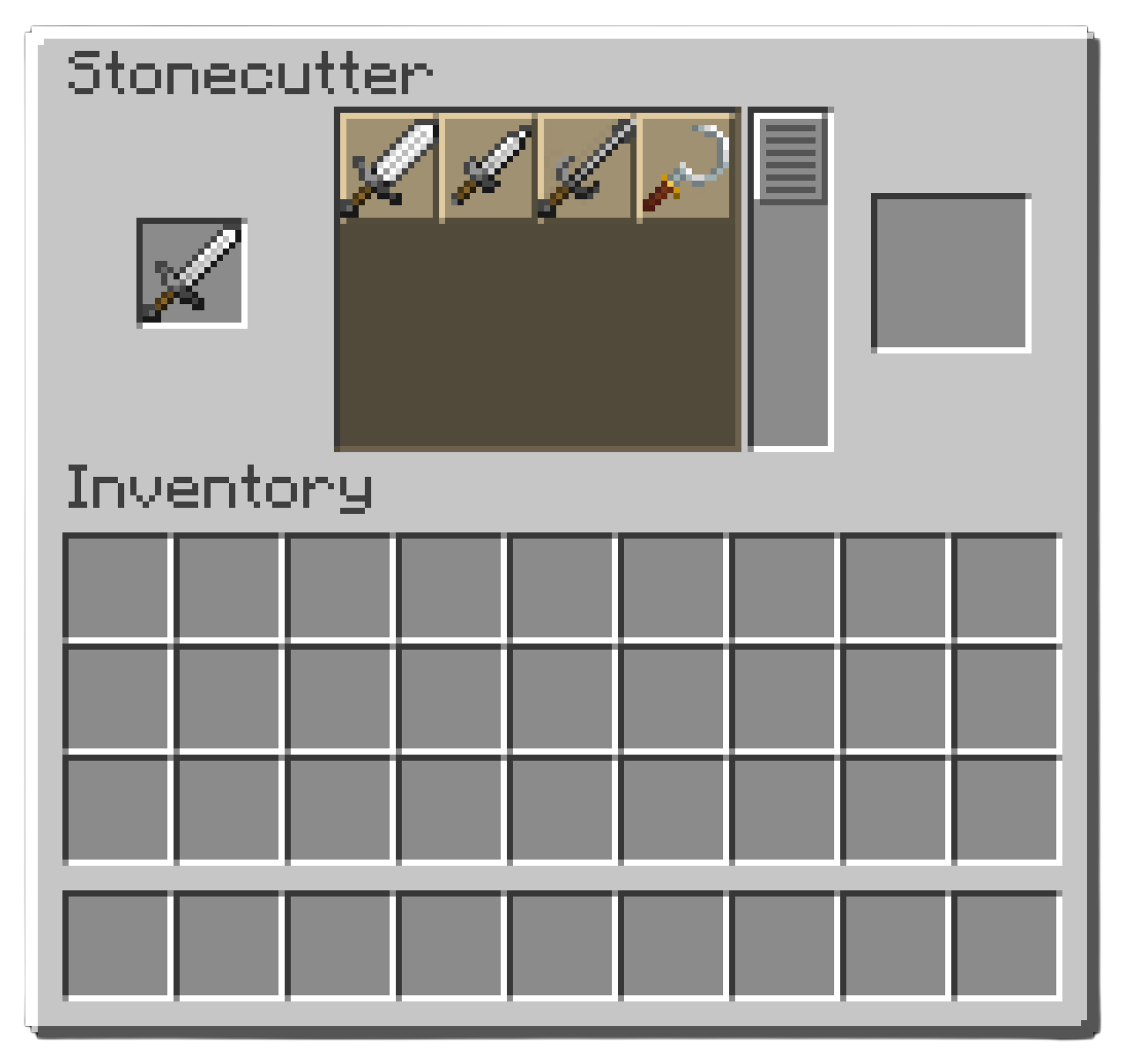 As of version 1.0, you can input an iron, stone, wood, gold, diamond, or netherite sword into a stonecutter to get their respective variations. However, a future feature may include a custom tile entity that can craft the different variations.