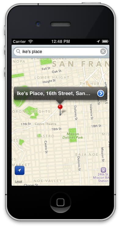 query.location = CLLocationCoordinate2DMake(37.76999, -122.44696);Then, call -fetchPlaces to ping Google's API and fetch results. The resulting array will return objects of the SPGooglePlacesAutocompletePlace class.