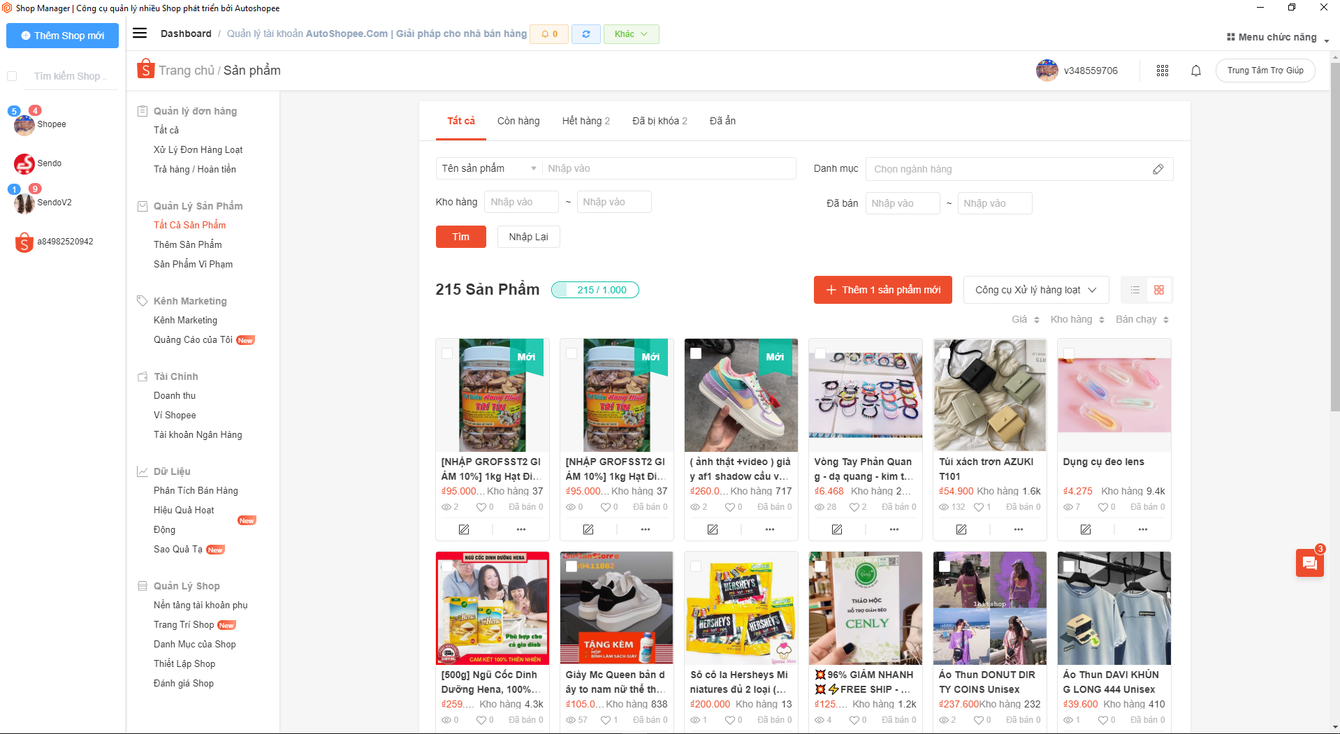 Phần mềm hỗ trợ quản lý nhiều tài khoản được phát triển bởi Autoshopee Shopee Sendo Lazada Tiki Tiktok Shop Giới thiệu https://blog.autoshopee.com/gioi-thieu-tong-quan-ve-giai-phap/ Cài đặt https://support.autoshopee.com/shopmanager/cai-dat Hướng dẫn https://support.autoshopee.com/shopmanager/quan-ly Video https://www.youtube.com/autoshopee