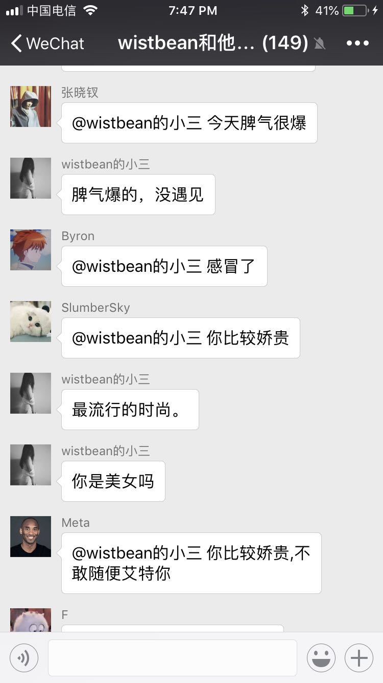 wechatGroupRobot 微信群机器人,在微信群上每天早晨根据天气提醒大家穿衣或带伞, 每隔一段时间提醒喝水,结合百度AI的API做一点geek的事! 实现原理 https://mp.weixin.qq.com/s/KtgAZzKDf7EYLGAGWrxhrA 技术选型 maven blade框架 httpclient zxing quartz Gson 微信群机器人 实现效果