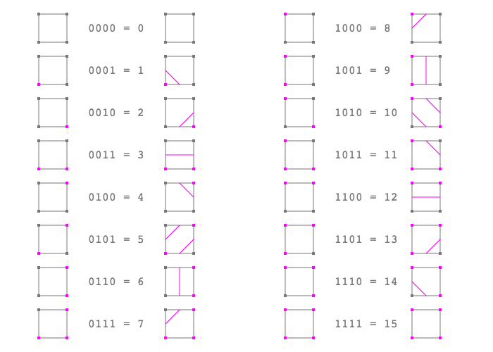 };Marching squares method: