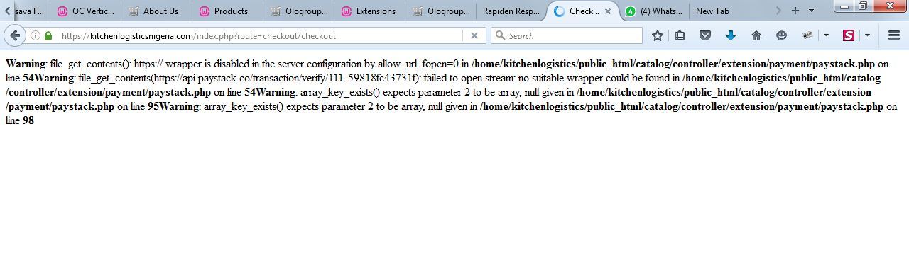 Hello i installed this plug in on my opencart site and after payment it briefly displays an error message and returns me back to checkout page .. i did install it well . Please someone save me