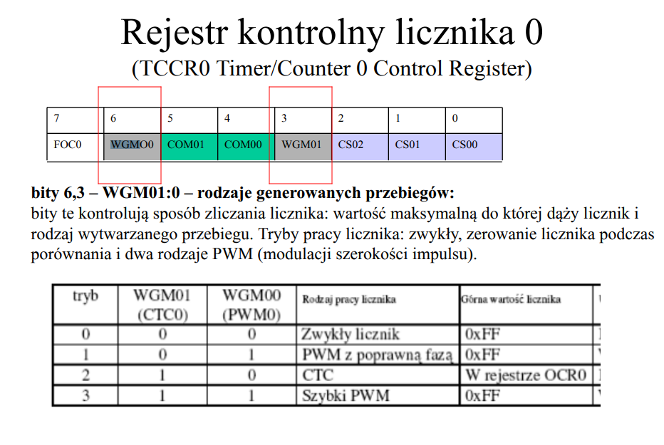 impulsu (PWM) z wykorzystaniem odpowiednich trybów liczników wbudowanych w mikrokontroler
